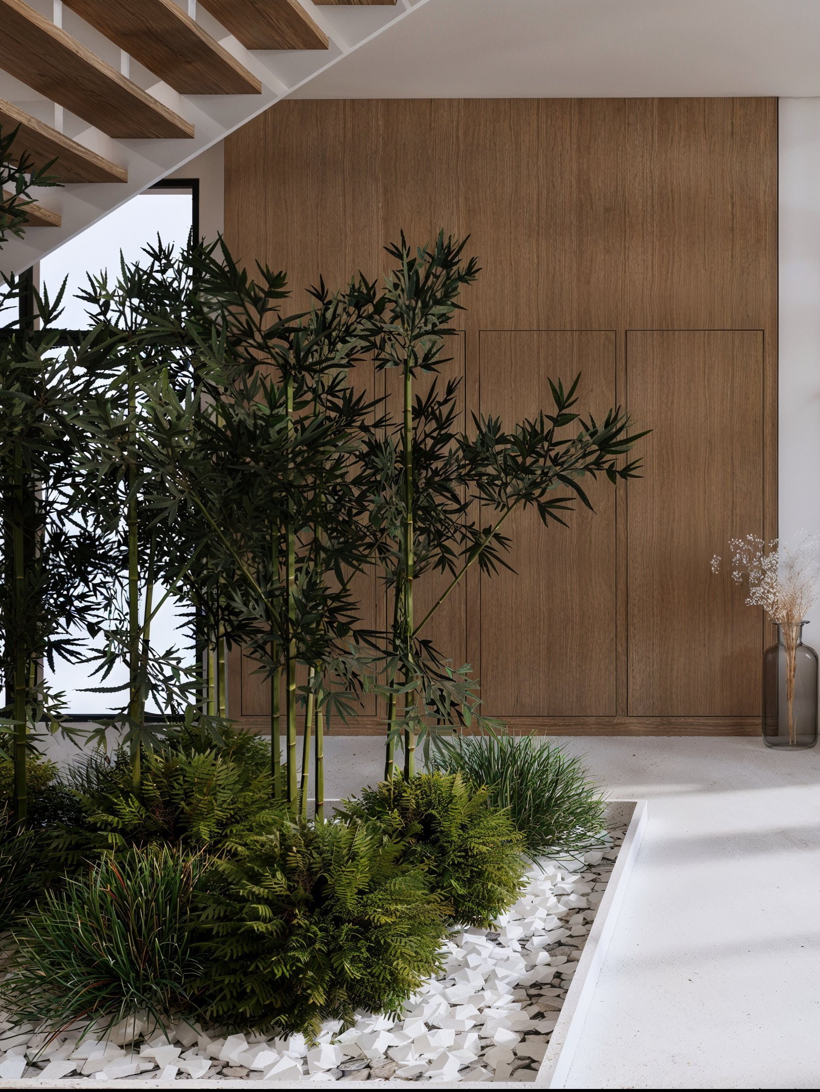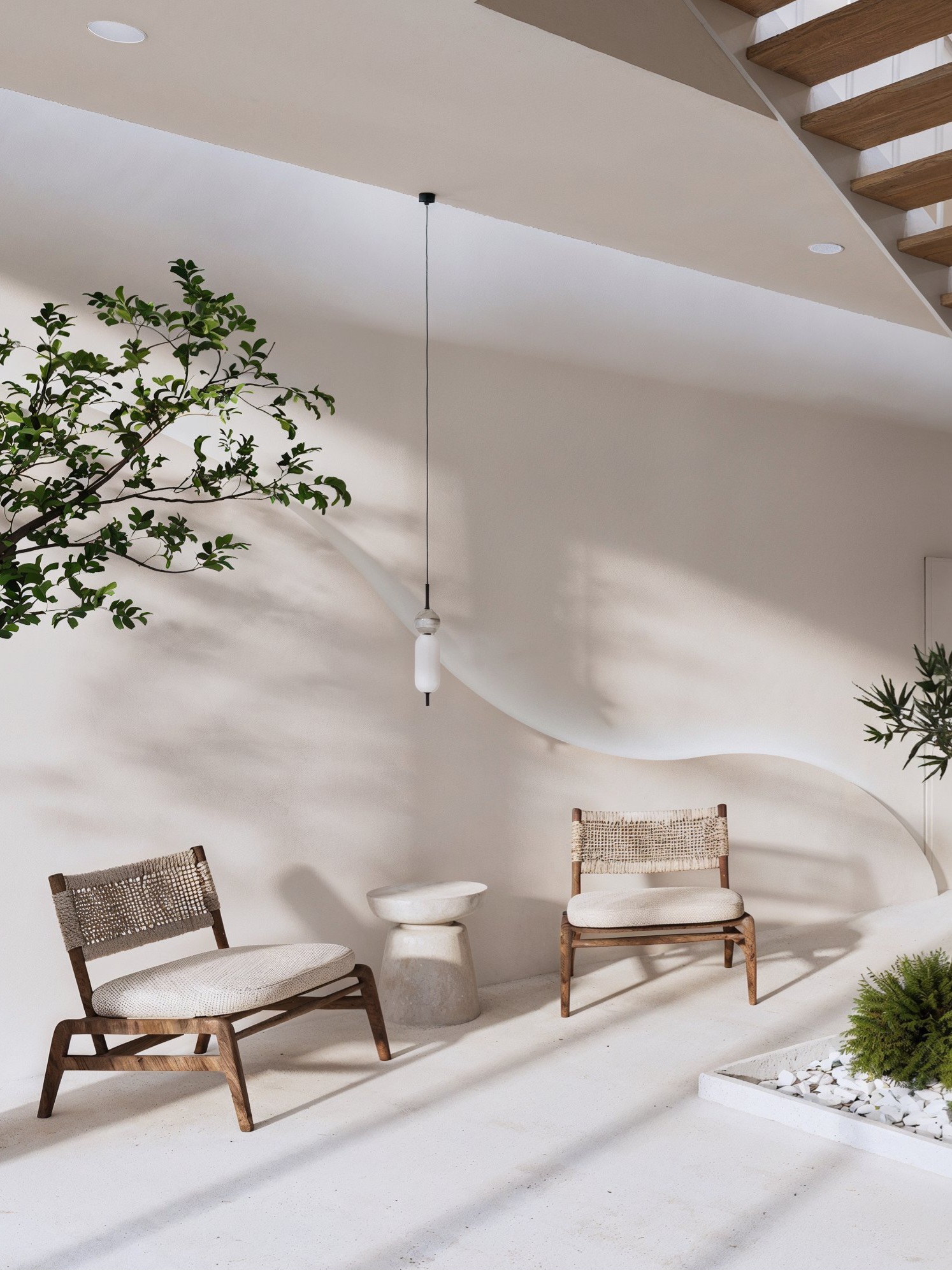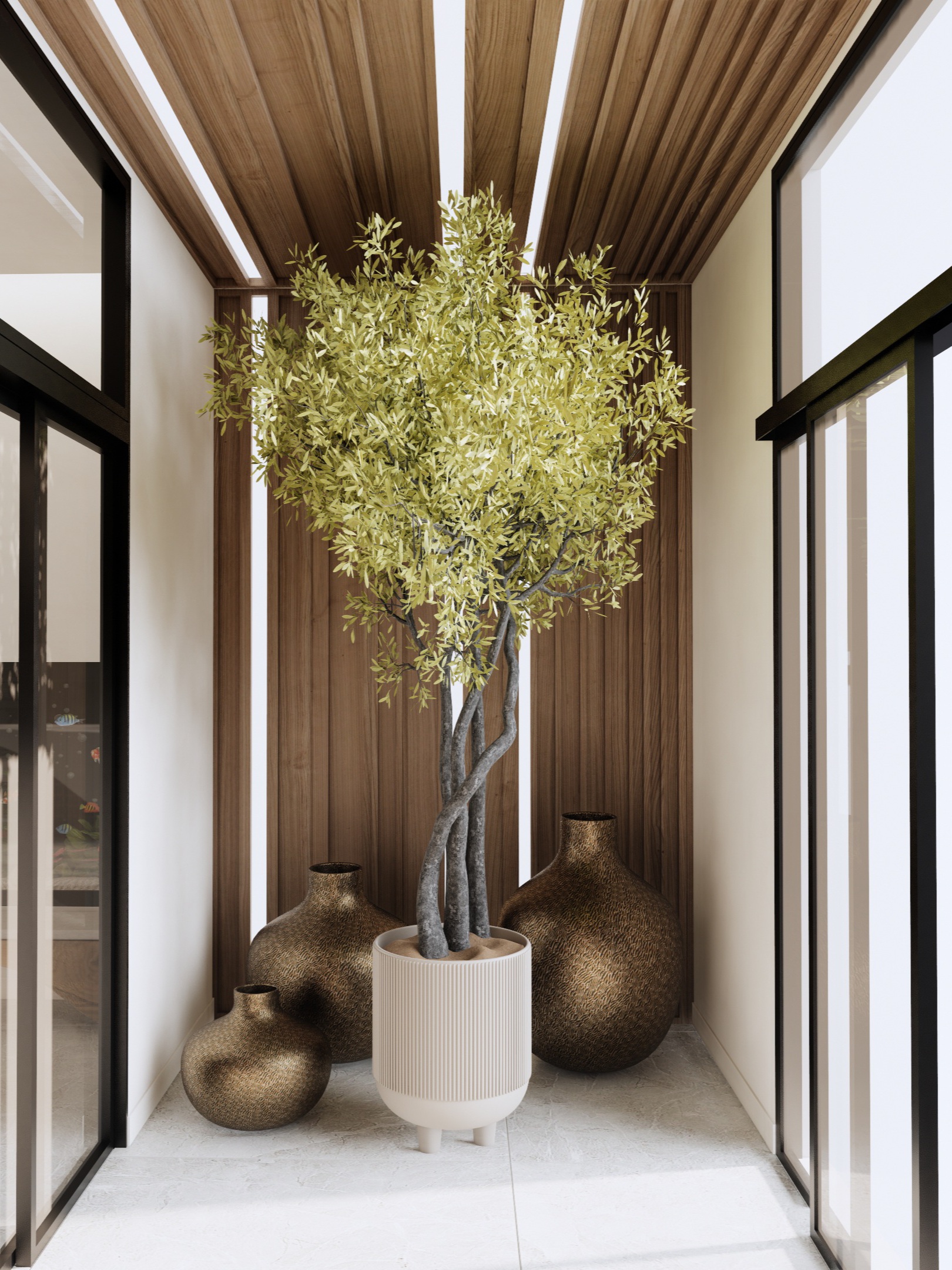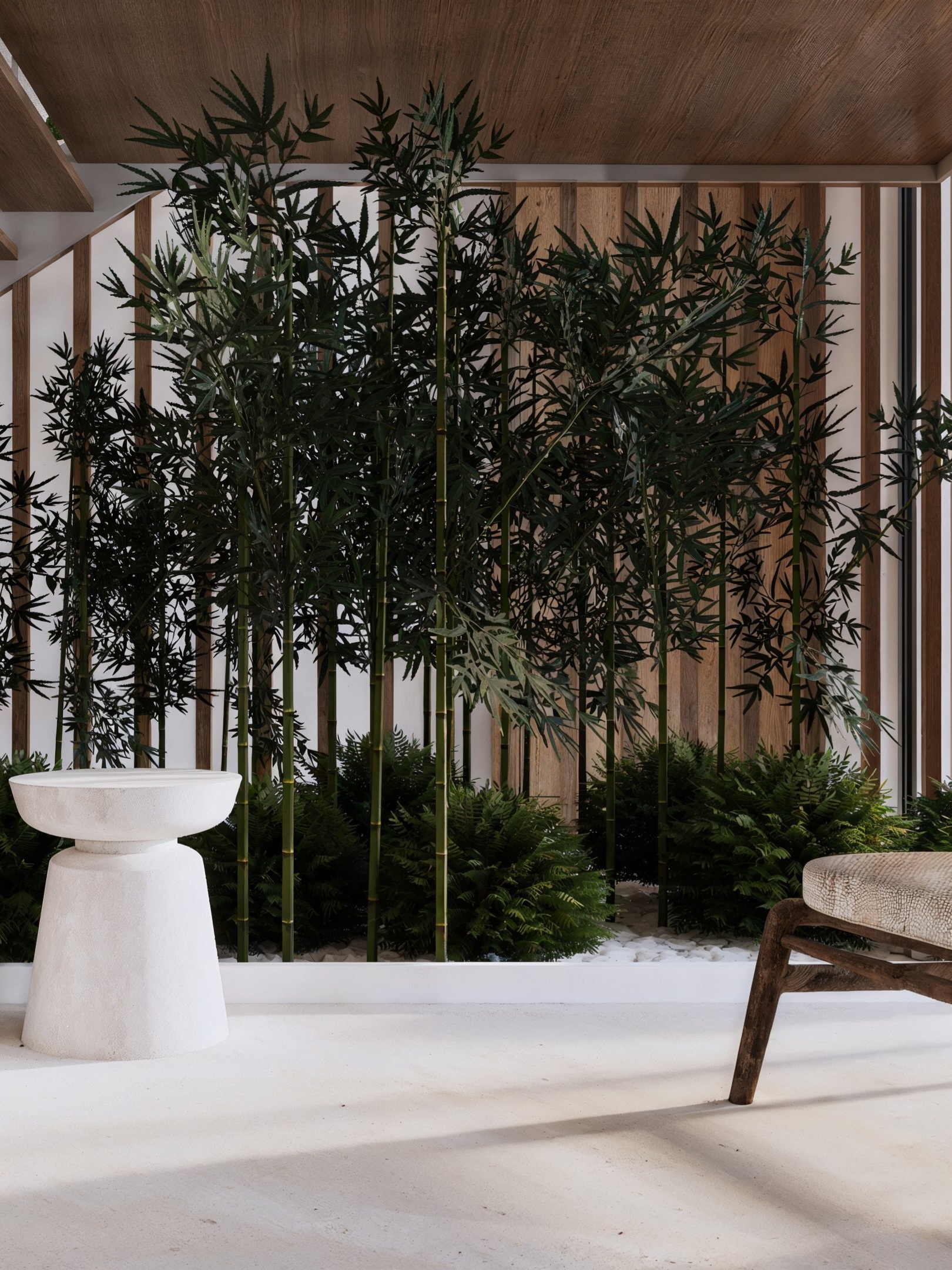 Notre réponse architecturale s’articule autour d’un vocabulaire sobre et statutaire, inspiré par l’hospitality. Les volumes sont apaisés, baignés de lumière, et rythmés par des arches qui structurent les perspectives et installent une sensation d’évidence. Les matières, elles, racontent le projet : un dialogue entre minéral clair, bois chaleureux et détails métalliques aux reflets doux, qui signent l’espace sans jamais le surcharger.